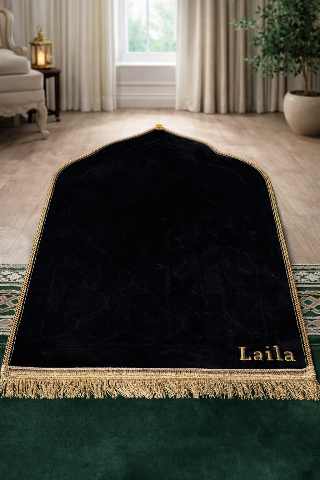 Gepersonaliseerde Luxe Zachte Gebedsmat - Zwart